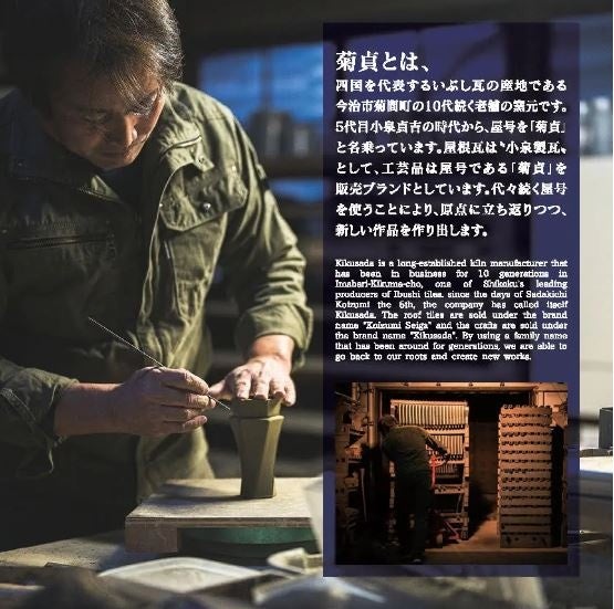 菊間瓦製のサウナストーン「鬼丸・鬼玉」の開発・デザインにご協力頂いたのは、四国を代表するいぶし瓦の産地・今治市菊間町で10代続く老舗の窯元「菊貞」創業300年以上の歴史をもつ、「菊貞」ブランドを展開する小泉製瓦有限会社です。