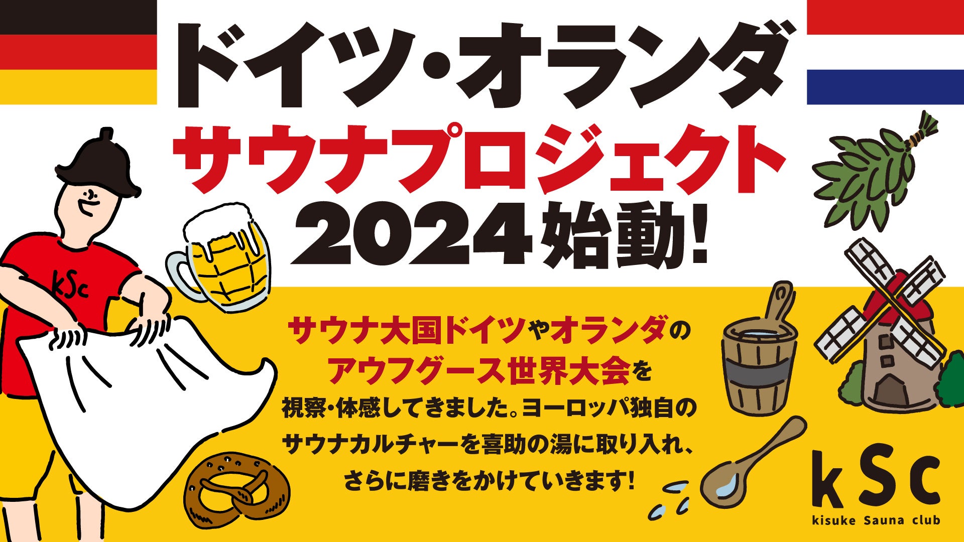 2022年にサウナ好きな社員により「kSc‐kisuke Sauna club-」サウナ自社ブランドを立ち上げ、様々なリニューアル、サービス提供やオリジナルグッズ開発を行っています。今後も四国のサウナ文化の発展に寄与するともに【四国サウナの聖地】としてサウナ愛好家の皆様に認知していただける様に更に進化を続けて参ります。