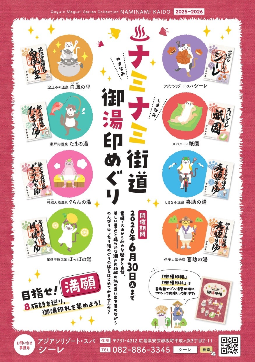 瀬戸内エリアの人気温浴施設をめぐるスタンプラリー企画「ナミナミ街道 御湯印めぐり」が、今年も開催されます。
