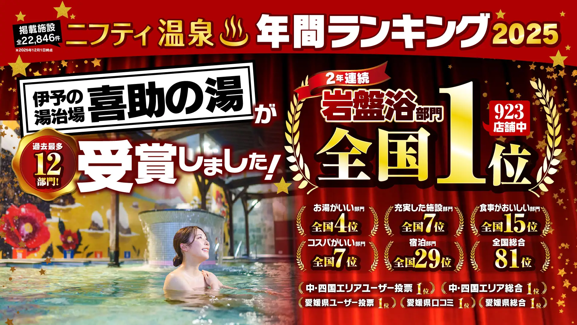 [プレスリリース]【喜助の湯】全国22,846施設から選出|喜助の湯グループが“過去最多19部門”で受賞 伊予の湯治場は2年連続「岩盤浴 全国1位」を獲得
