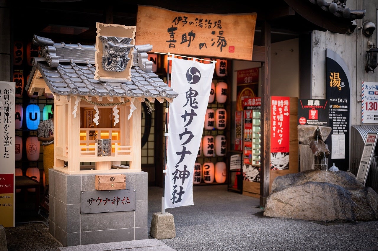 「伊予の湯治場 喜助の湯」には、日頃の健康的なサ活(サウナ活動)に感謝し、健康を祈願する全てのサウナ愛好家に捧げる新たな聖地「鬼サウナ神社」が2023年に建立されました。